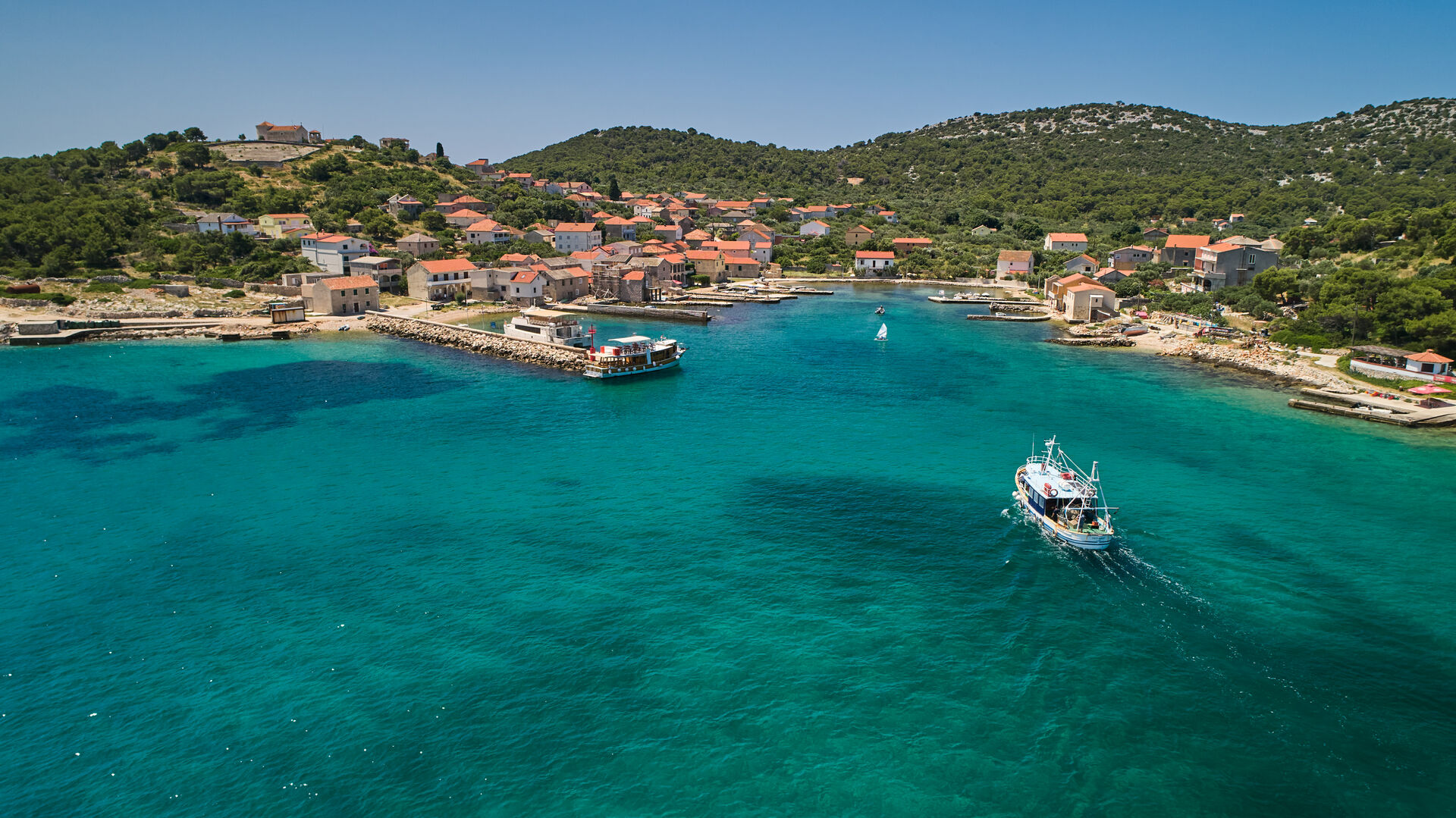 **Vrgada:** Mali otok poznat po netaknutoj prirodi i mirnim uvalama, idealan za opuštanje.